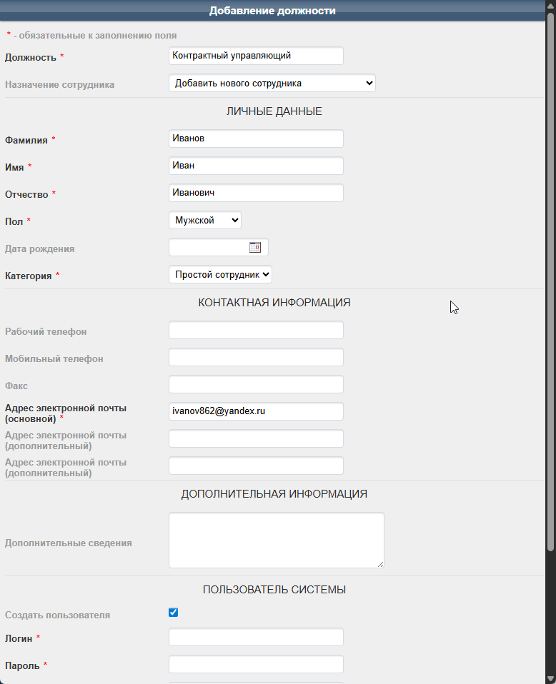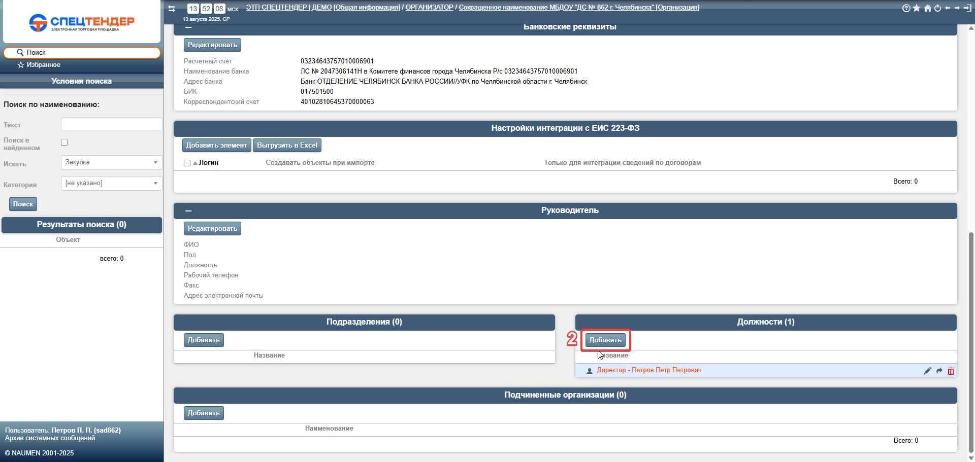 2.В разделе «Должности» нажмите на кнопку «Добавить»: