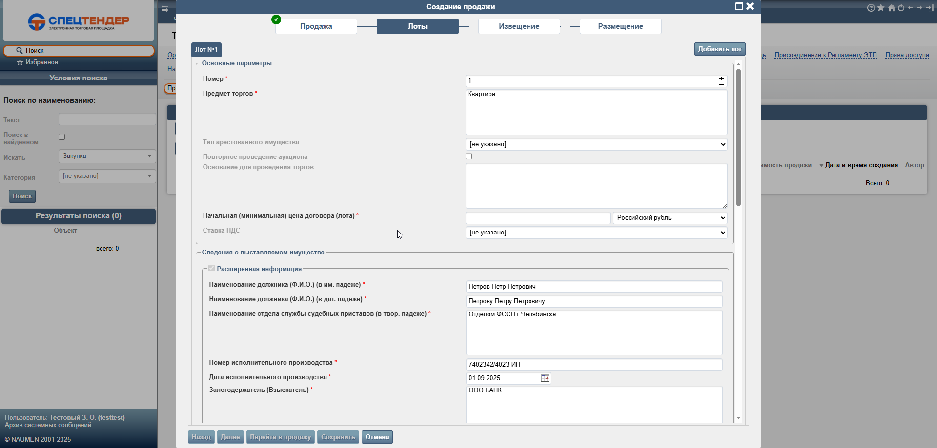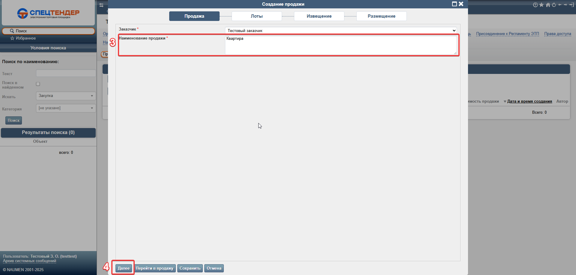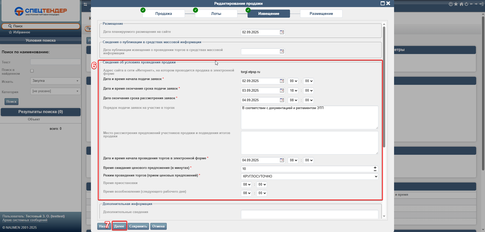 6. Укажите дату и время проведения продажи в соответствующих обязательных полях.