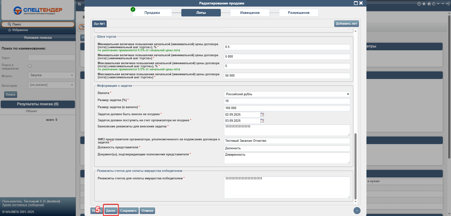 5. Заполните все обязательные поля формы (обязательно проверить корректность вводимых данных) и нажмите «Далее».