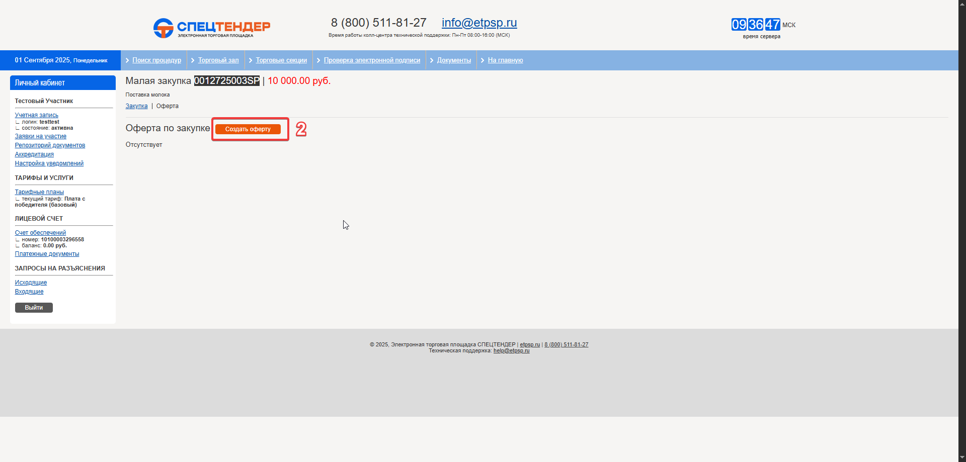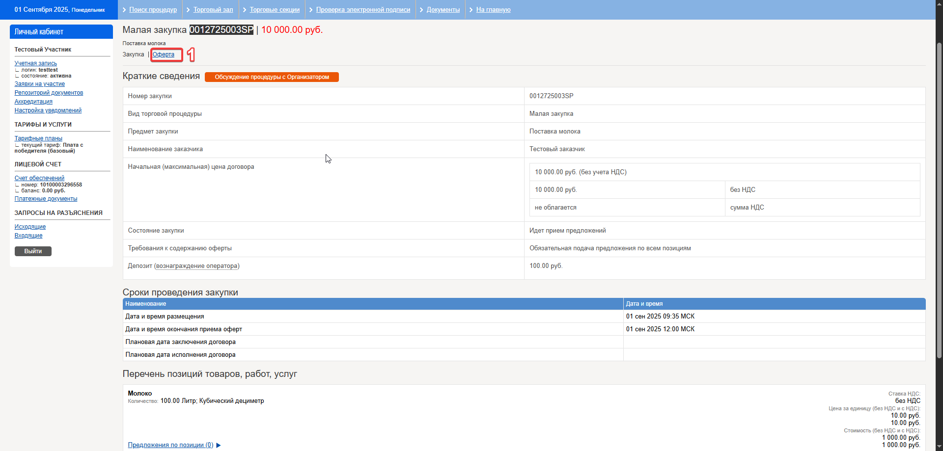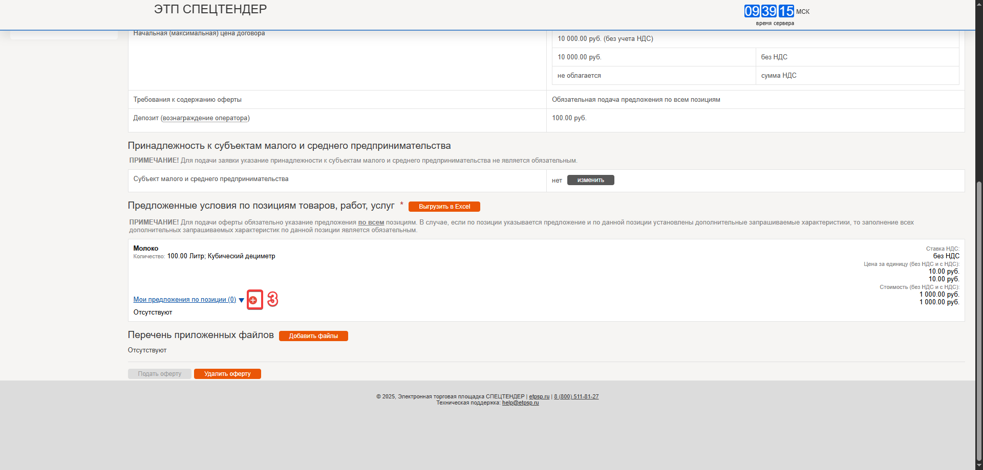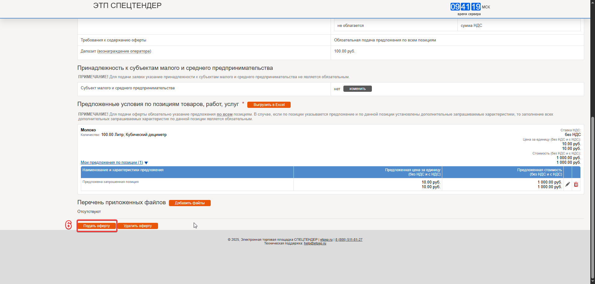 6. После внесения всех необходимых предложений нажмите кнопку «Подать оферту».