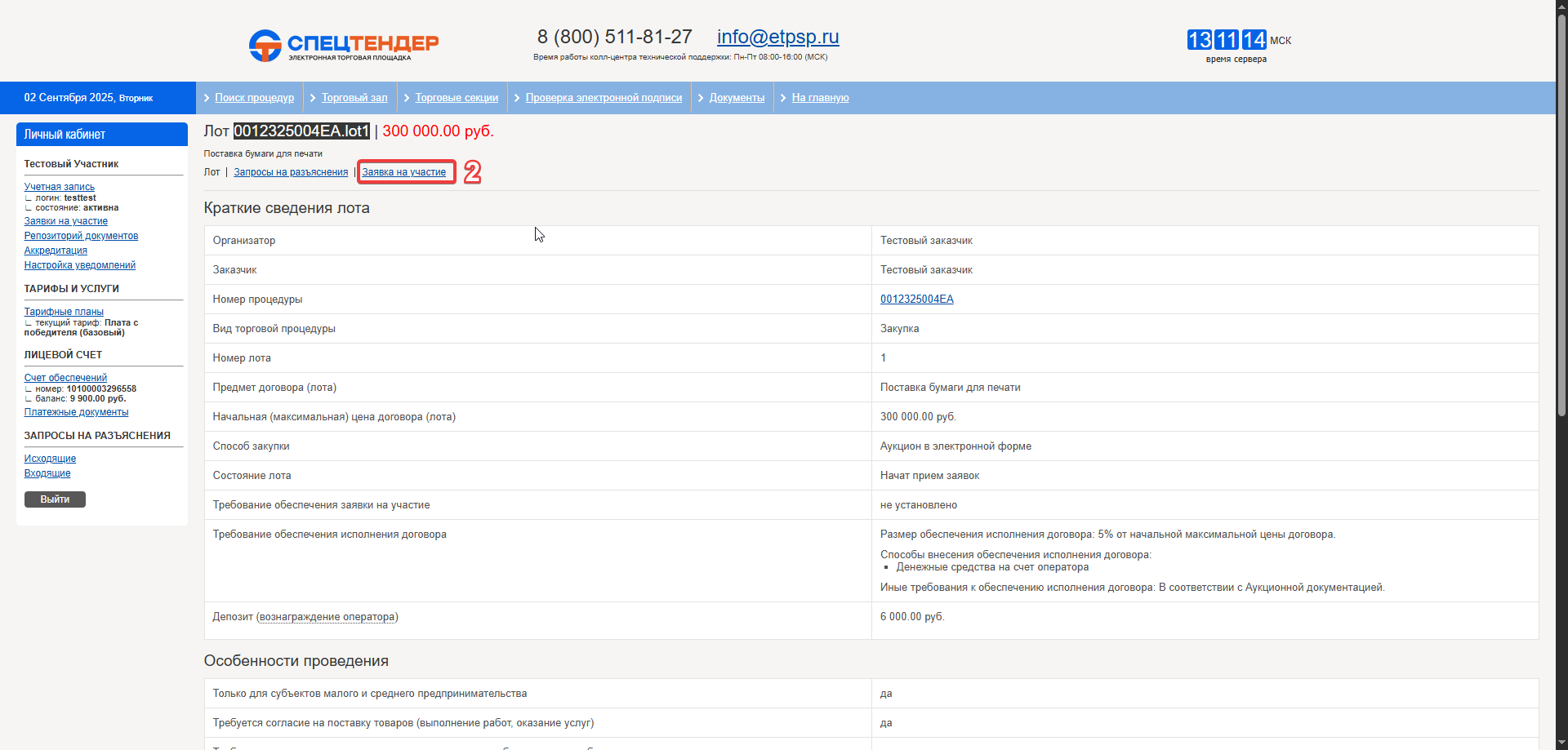 2. Перейдя в процедуру, нужно нажать на ссылку «Заявка на участие» или кнопку «Идёт приём заявок».